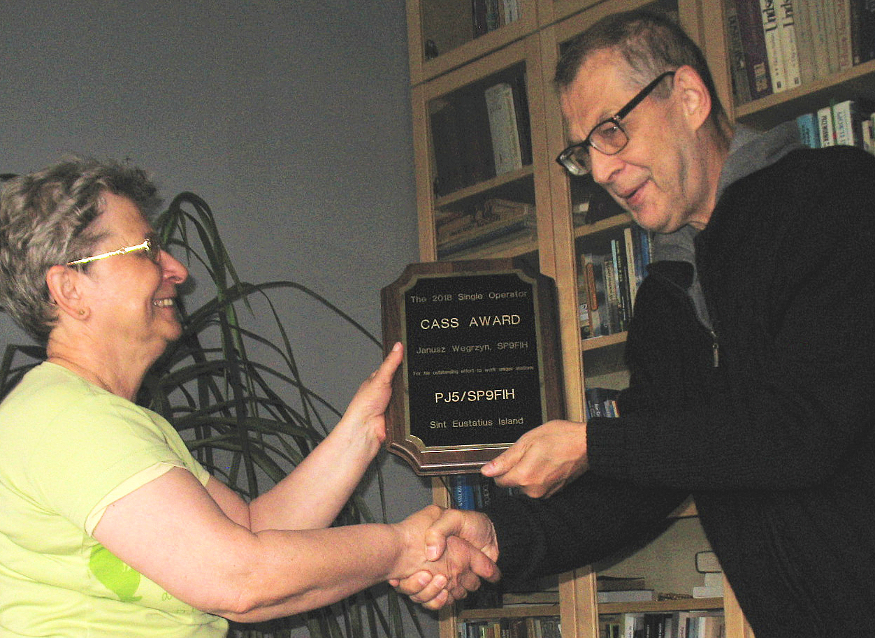 Janusz Wegrzyn, SP9FIH, has been named as the winner of the 2018 Single-Operator Cass Award for the second year in a row. While active from Sint Eustatius Island as PJ5/SP9FIH in March 2018, Wegryzn contacted 8,257 unique stations during the 14 days of his one-person DXpedition.